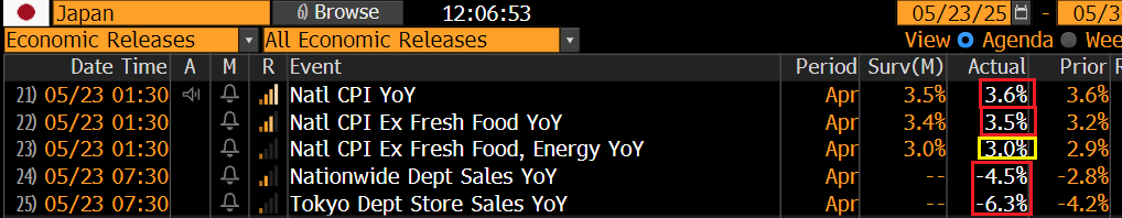 Il calendario macro asiatico oggi è dominato dal Giappone, dove il CPI di aprile ha sorpreso, tanto per cambiare, al rialzo, anche se il dato core, pur salendo, è in linea con le attese. E le retail sales invece sono calate.